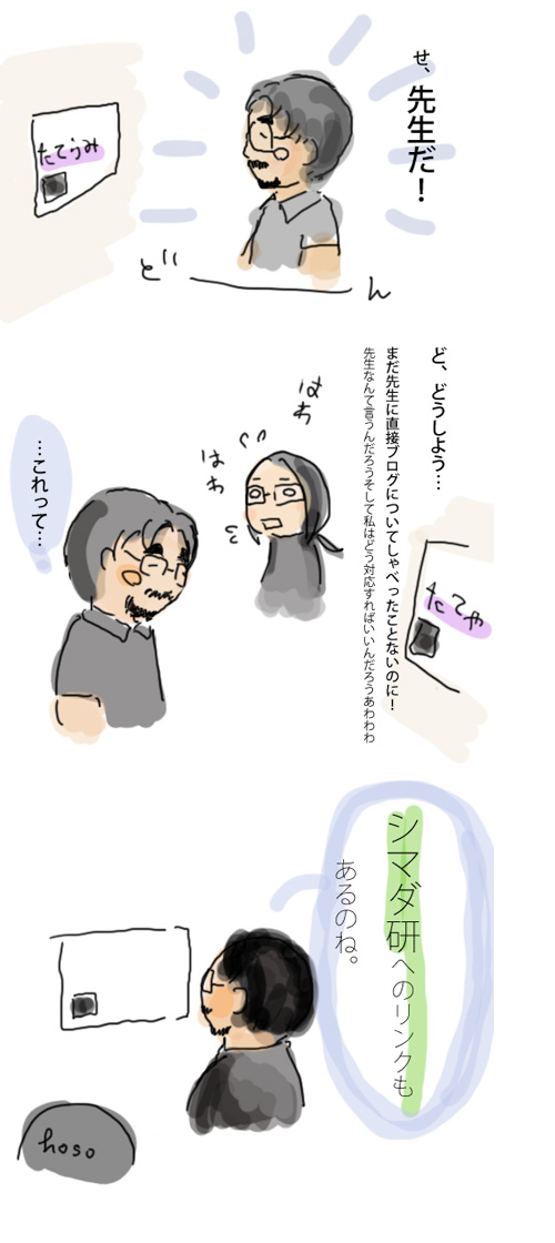 しかし、登場人物が私と先生だけだと画面が黒いなぁ…。