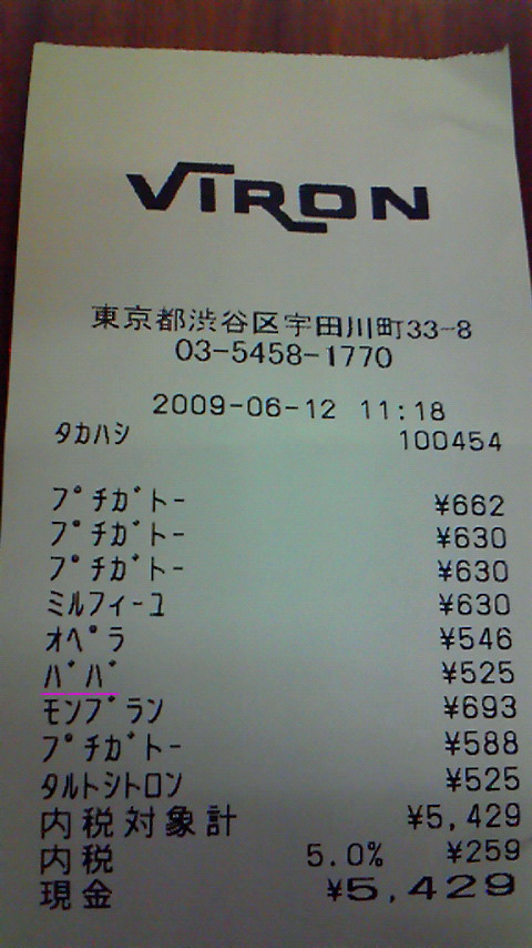 画像は証拠のレシート。ちなみに店員さん的に前にアクセントらしいです、残念。。