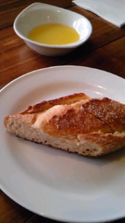 パンは外カリカリ&中もちもち。オリーブオイルでいただきました。