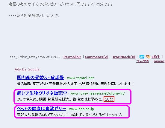 また、「館山の海より」に変な広告がついていたのでお知らせします。